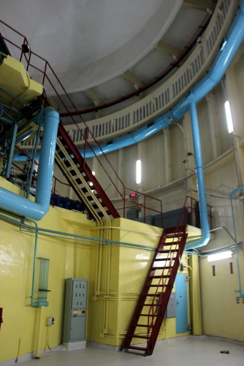 Lò phản ứng hạt nhân có 2 tầng với lối lên bậc thang. Tầng cao nhất là miệng chính của lò, tầng còn lại đặt các dụng cụ liên quan đến hoạt động của lò.