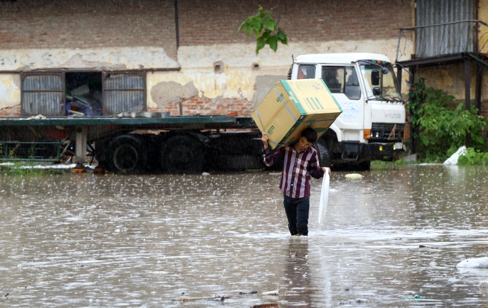 Cửa hàng bên đường phải dùng đồ đạc che chắn, tránh nước tràn vào nhà.