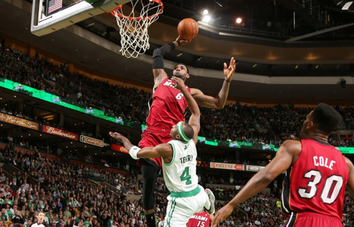 LeBron James và Miami Heat từng bất ngờ thua Dallas Mavericks ở chung kết NBA 2011. Trong loạt trận ấy, Jason Terry gây ra rất nhiều khó khăn cho đại diện miền Đông. Hai năm sau, khi Terry chuyển đến Boston Celtics, James đã trả lại món nợ. Trong một tình huống tấn công, Terry mất bóng ngay trên sân nhà trước áp lực của các cầu thủ Heat. Ngay lập tức, ba cầu thủ của đội khách lao vào tấn công rổ. Pha bóng kết thúc bằng cú úp rổ của LeBron James trên đầu của cựu cầu thủ Mavericks.