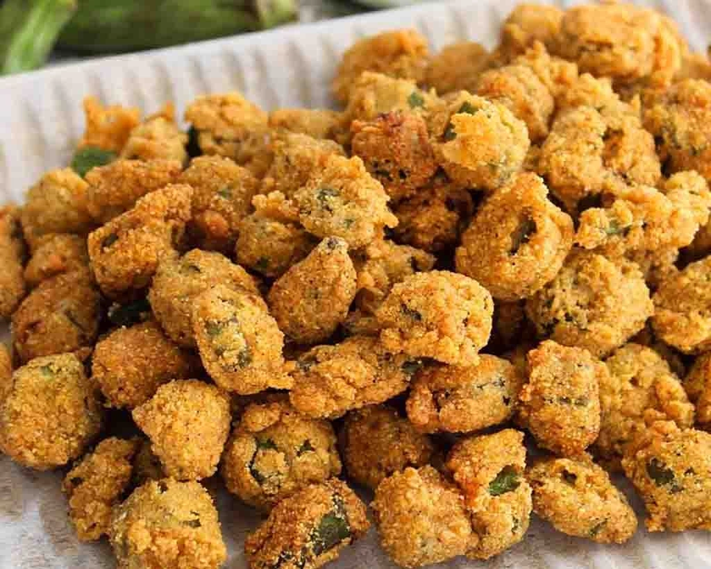 Đậu bắp, loài cây phát triển mạnh trong điều kiện nóng ẩm, là món ăn thường xuyên xuất hiện trên bàn của người Mỹ. Bên cạnh đó, người Mỹ rất yêu thích các món ăn chiên ngập dầu. Do đó, đậu bắp chiên là món ăn kết hợp giữa hai thói quen lâu đời của người dân nước này, và được nhiều người yêu thích. Ảnh: Just A Pinch