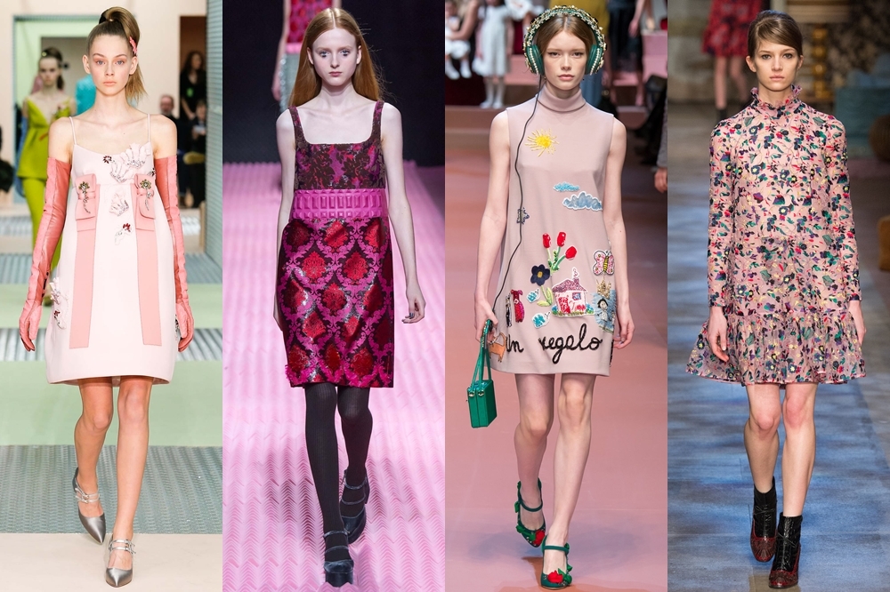 Váy búp bê (babydoll) được Prada, Dolce & Gabbana, Dior... lăng xê trên sàn diễn Thu Đông 2015. Với độ dài đến gần gối, kiểu thiết kế này phù hợp với những cô gái có đôi chân nhỏ, dáng người vừa phải và yêu thích phong cách dễ thương.