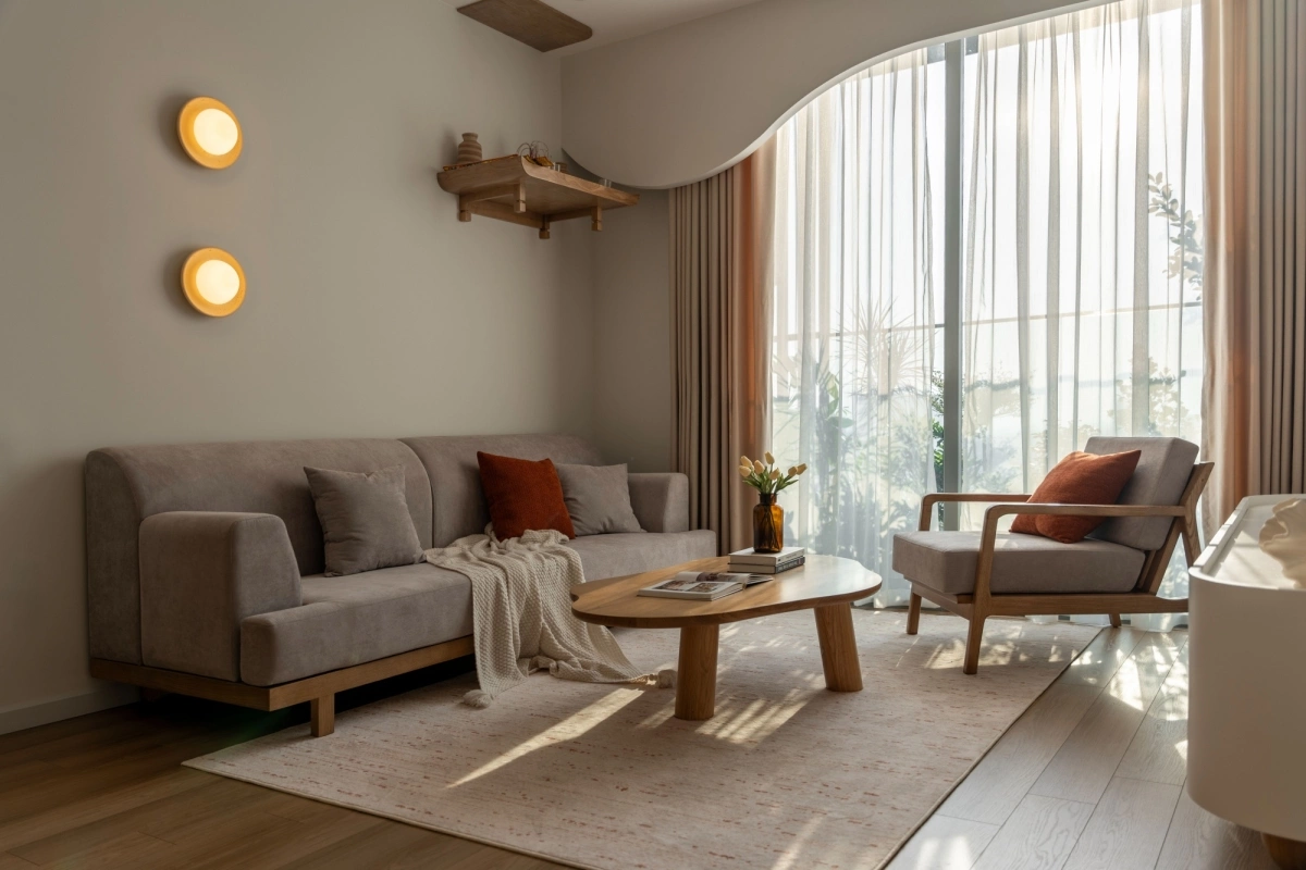 Không gian được tính toán kỹ lưỡng: khu bếp tiện nghi, phòng khách thoáng mở, khu nghỉ ngơi tách biệt để đảm bảo riêng tư. Cảm xúc đến từ những chi tiết nhỏ như ánh nắng chiếu lên mảng gỗ vào buổi sáng hay chiếc ghế đặt cạnh cửa sổ, nơi có thể ngồi đọc sách hoặc nghỉ ngơi trong yên tĩnh.