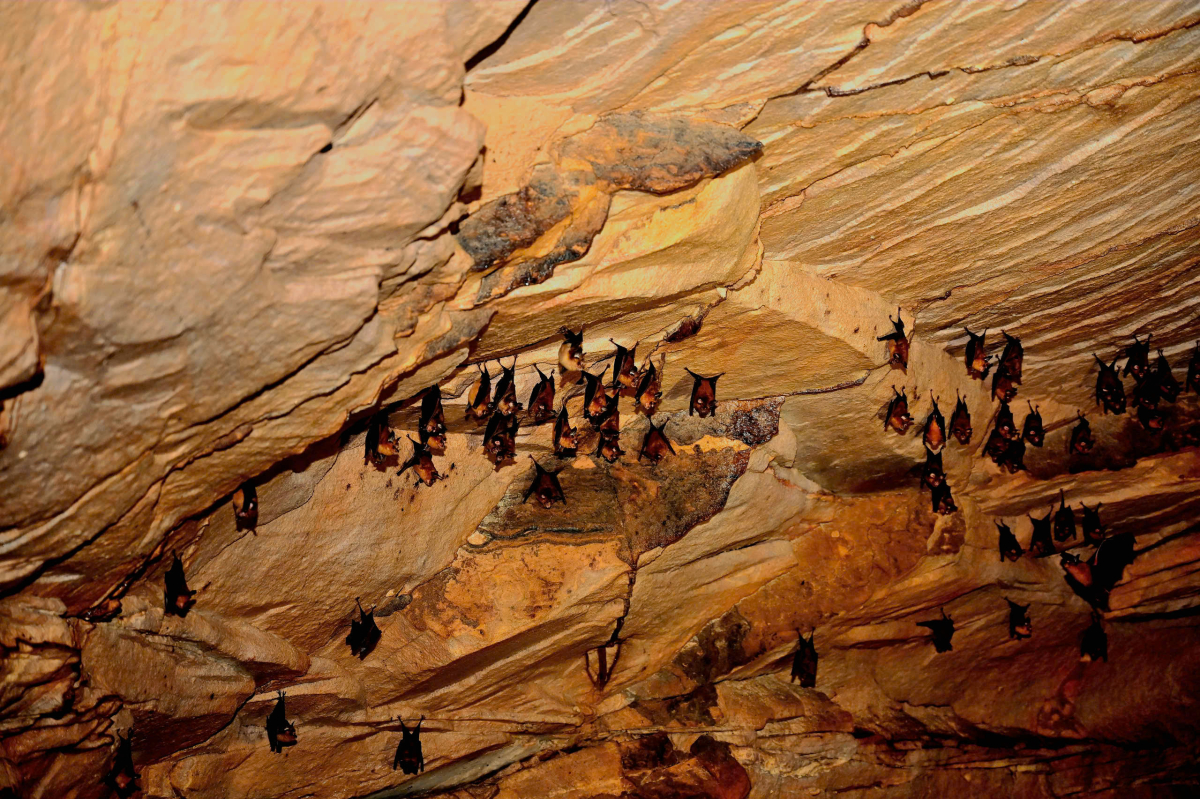Hang Dơi nằm trong vườn VQG, được tạo thành từ những khối nhũ đá vôi hình thành từ hàng triệu năm trước, có hơn một nghìn dơi trú ngụ.