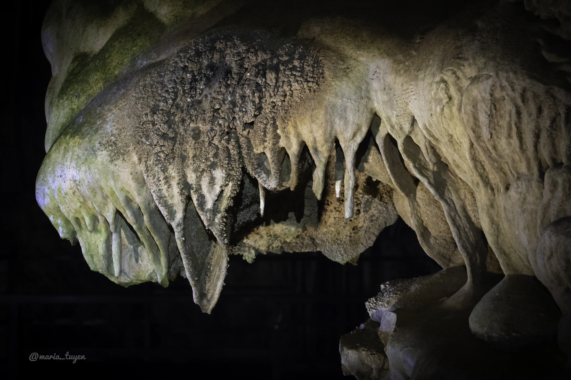 "Càng đi sâu vào bên trong khung cảnh càng đẹp, kỳ diệu, lung linh bởi hệ thống thạch nhũ, măng đá, trụ đá. Thạch nhũ có dáng vẻ khác nhau, thô ráp có, đường bệ uy nghiêm có, cả những chiếc bé bé xinh xinh màu ngọc trong veo", Tuyền chia sẻ ấn tượng khi vào hang động.