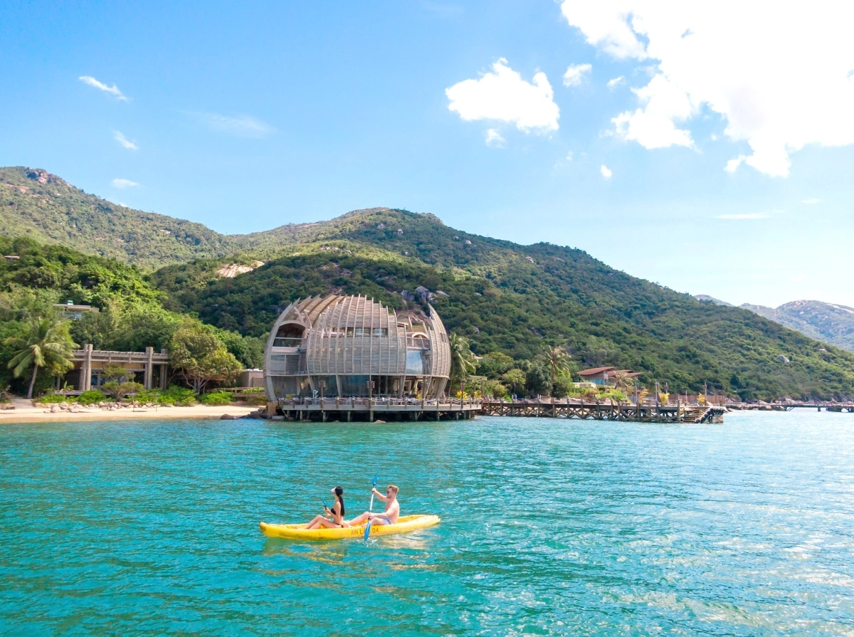 Khu nghỉ từng nhiều lần được lên báo nước ngoài, gồm 71 phòng và biệt thự, xây dựng theo 3 phong cách kiến trúc khác nhau, như nhà sàn, nhà người Chăm và người Eden. Du khách sẽ ấn tượng với vẻ mộc mạc đến từ cách xây dựng, nội thất từ vật liệu tự nhiên như gỗ, mây, tre... Bên cạnh những buổi tắm biển dưới nắng ấm, đi dạo trong khuôn viên xanh mát thì du khách có thể lặn ống thở, lướt sóng, chèo thuyền... Giá lưu trú ở đây từ 10 đến gần 90 triệu đồng một đêm.