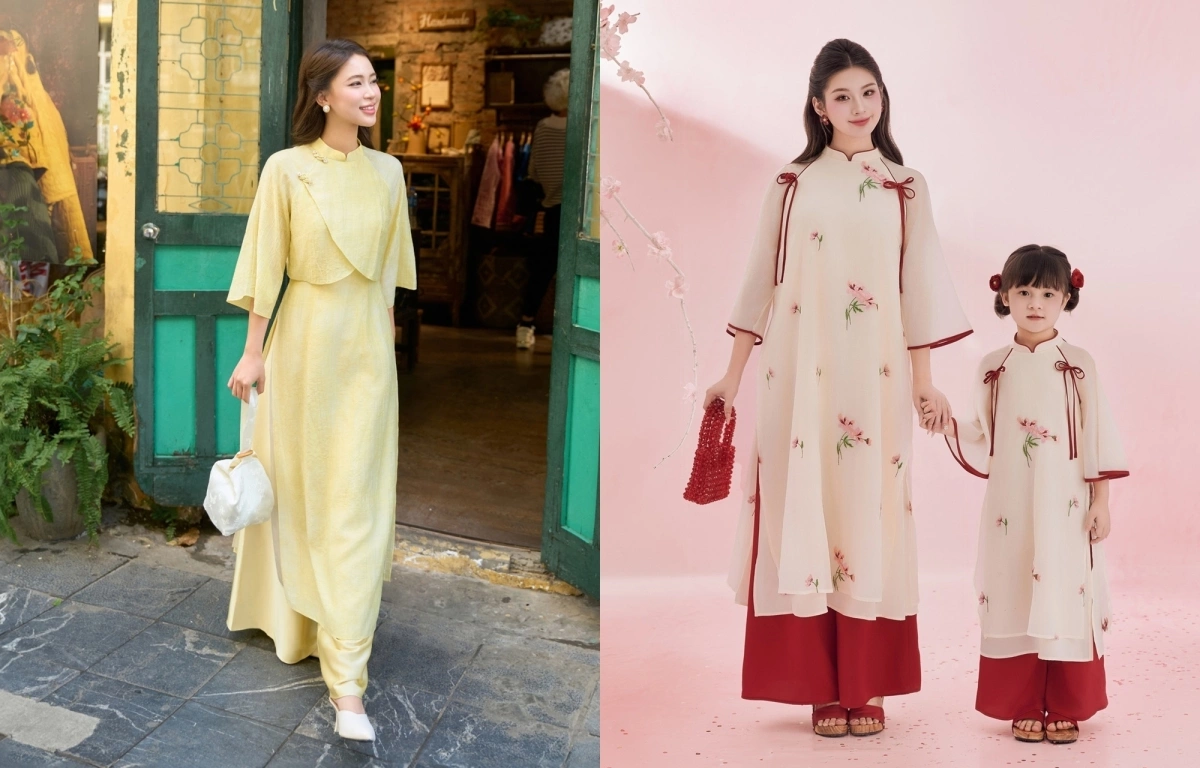 Gây sốt ba năm qua, áo dài dáng suông rộng, đơn sắc theo kiểu thập niên 1930 tiếp tục được nhiều người yêu thích, xuất hiện trong nhiều bộ sưu tập của các thương hiệu địa phương (local brand). Kiểu áo cơ bản này không lỗi mốt, không ảnh hưởng bởi các xu hướng mới "sớm nở chóng tàn", đem lại vẻ sang trọng. Các cô gái còn ưa chuộng chúng bởi sự thoải mái, giấu được khuyết điểm vòng hai. Ảnh: Tunhamay