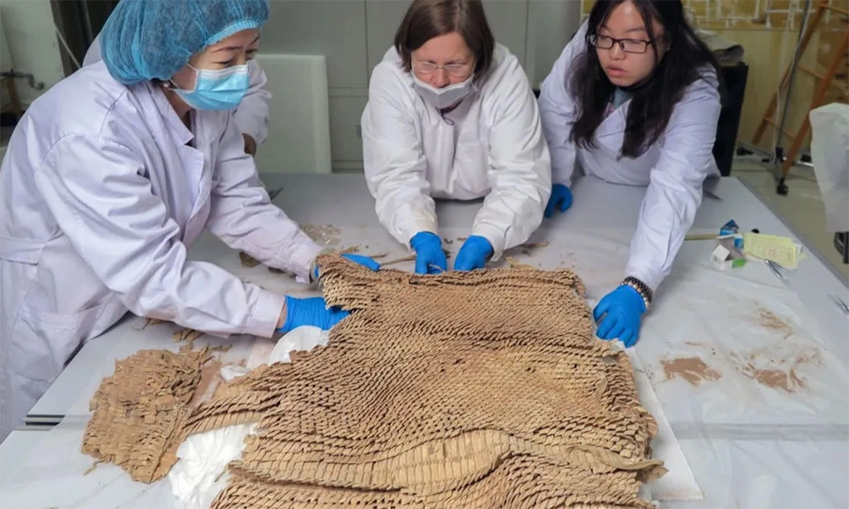 Bộ giáp làm từ hàng nghìn mảnh da nhỏ được phát hiện trong một ngôi mộ ở nghĩa trang Yanghai, rìa sa mạc Taklamakan. Theo nghiên cứu, đây là trang phục nhẹ và phù hợp với mọi cỡ người, dùng cho một đội quân lớn. Vật liệu hữu cơ như da tồn tại lâu mà không mục nát là một điều bất thường. Các nhà nghiên cứu cho rằng môi trường sa mạc cực kỳ khô đã góp phần bảo tồn nó.