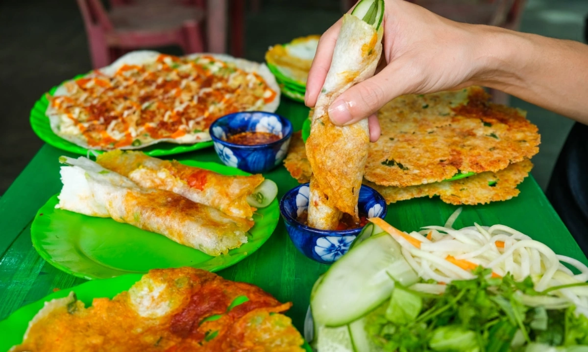 Bánh ép là đặc sản du khách nên thử khi tới thăm cố đô. Món ăn được làm từ bột lọc, trứng, thịt lợn rim, hành lá... Bột bánh cùng nhân được đặt giữa 2 tấm gang nóng trên bếp than và ép chặt khoảng 5-6 giây. Người làm thêm một trứng cút và tiếp tục ép, lật đều 2 mặt. Du khách có thể ăn dẻo hoặc yêu cầu bánh giòn, ép lâu hơn. Bánh ép được cuốn với dưa chuột, rau sống, dưa góp và chấm với nước dùng chua cay. Một địa chỉ gợi ý là quán Mệ Thy - Kiệt ở 45 Đỗ Nam.
