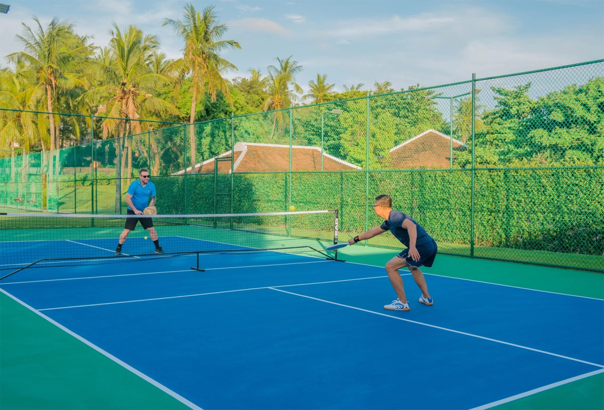 Khách lưu trú và khách bên ngoài đều có thể sử dụng sân pickleball của khu nghỉ. Giá thuê từ 150.000 đồng một giờ. Thời gian mở cửa từ 6h đến 21h. Khách chơi cần đặt trước với lễ tân trước ít nhất một ngày để đảm bảo có sân trống.