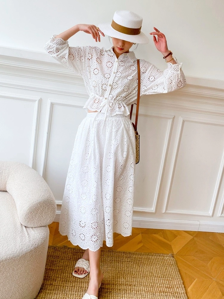 Sơ mi ren hoặc đục lỗ màu trắng mang phong cách đồng quê được nhiều người ưa chuộng hè năm nay. Theo WWW, đây cũng là món đồ dễ dàng phối với váy và các kiểu quần. Ảnh: Pinterest