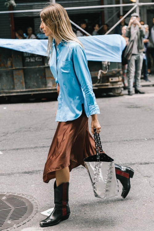 Bốt cowboy được dự báo khiến nhiều tín đồ ưa chuộng. Bạn có thể phối chúng với chân váy đến gối. Một chiếc bốt cowboy họa tiết da rắn sẽ phù hợp những cô gái yêu phong cách thời trang thập niên 1970.