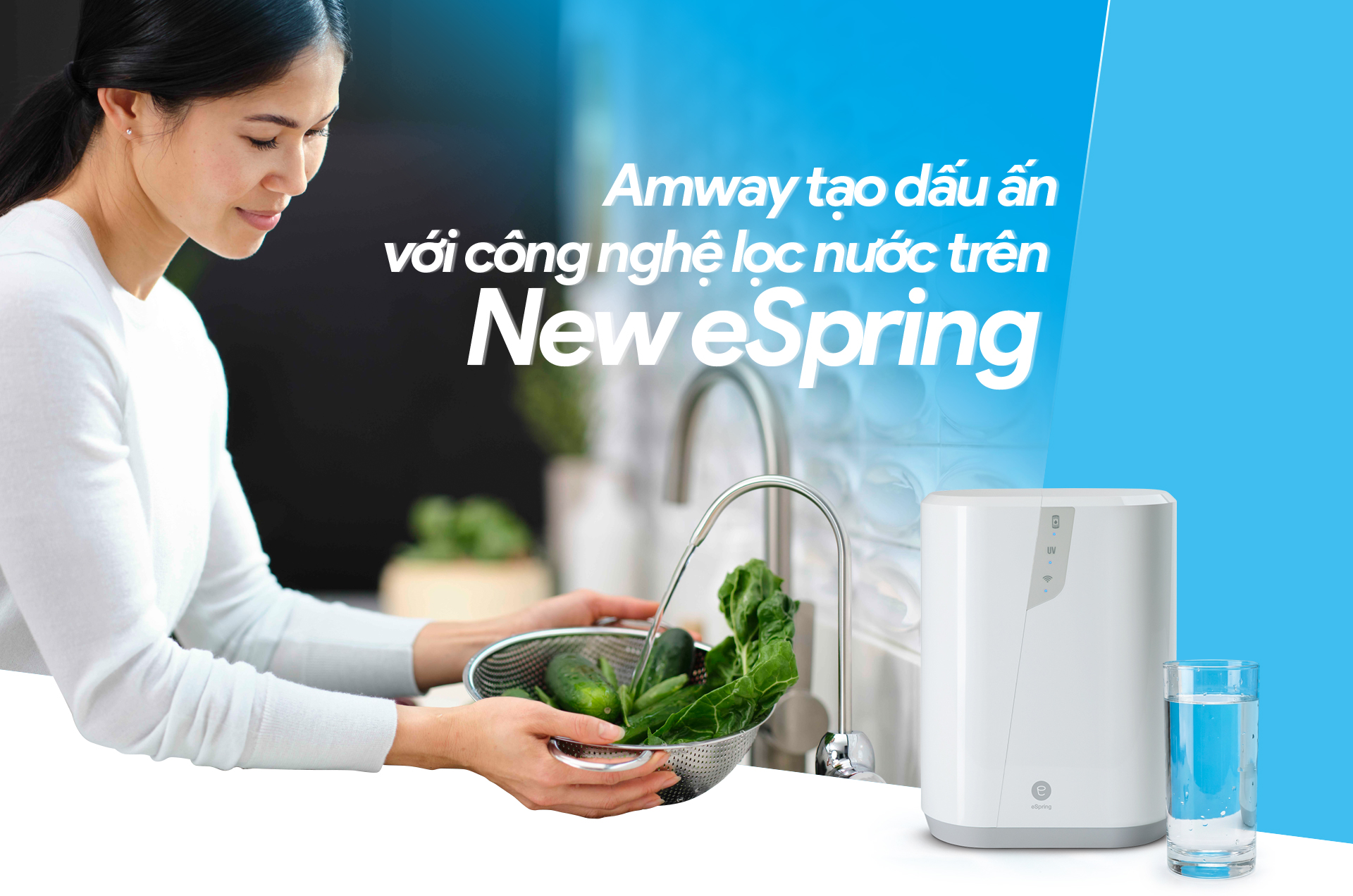 New eSpring là thành quả mới nhất từ quá trình nghiên cứu lâu dài đó. Máy kết hợp Bộ lọc Carbon e3 và đèn UV-C LED trong một thiết kế nhỏ gọn, có khả năng giảm thiểu đến 170 chất gây ô nhiễm và 99,9% vi khuẩn, vi rút, bào nang trong nước (theo xác nhận từ Tổ quốc Quốc tế NSF).