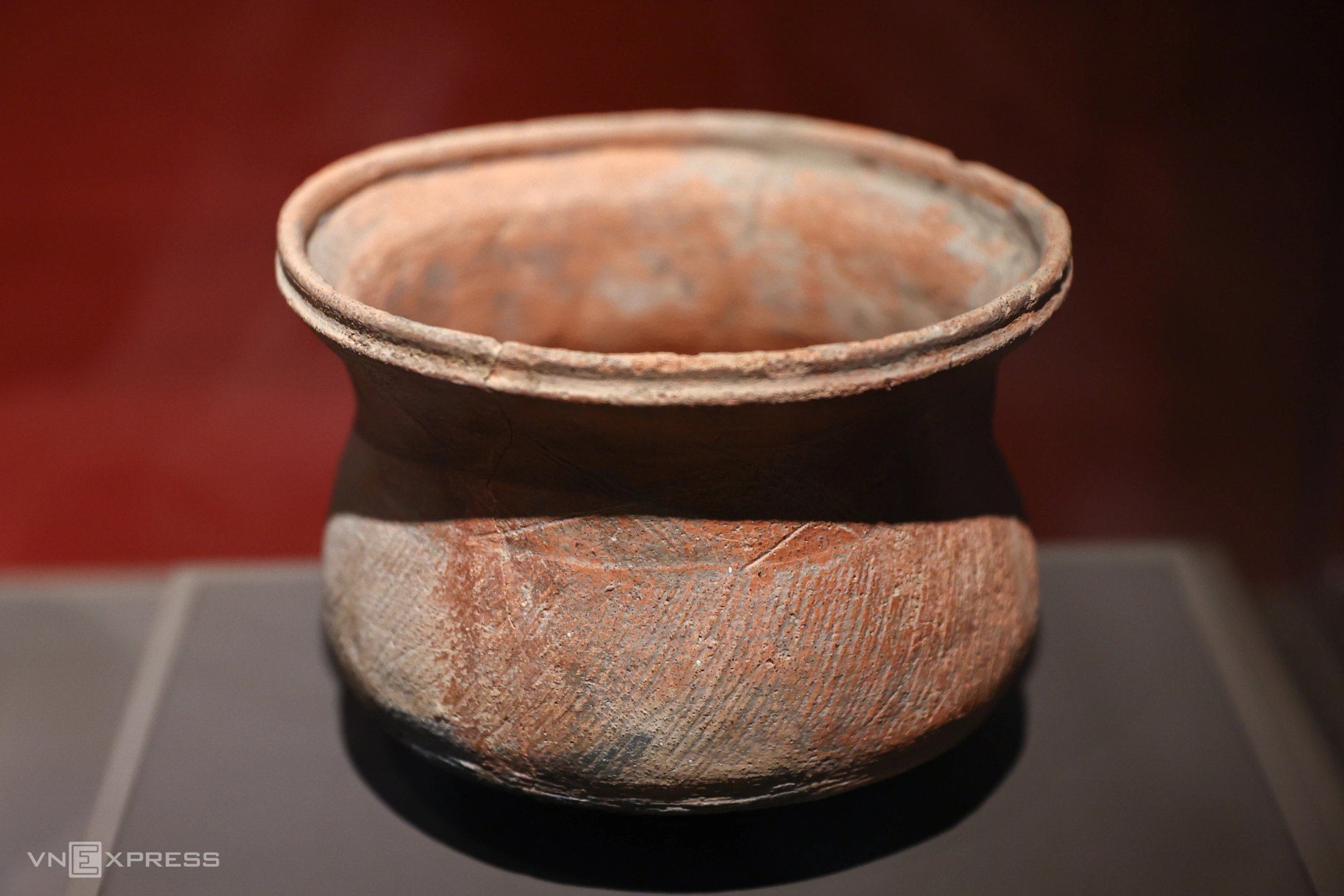 Chiếc nồi gốm thuộc nền văn hóa Cái Bèo, niên đại khoảng 7.000 năm, là một trong những cổ vật xưa nhất ở bảo tàng.