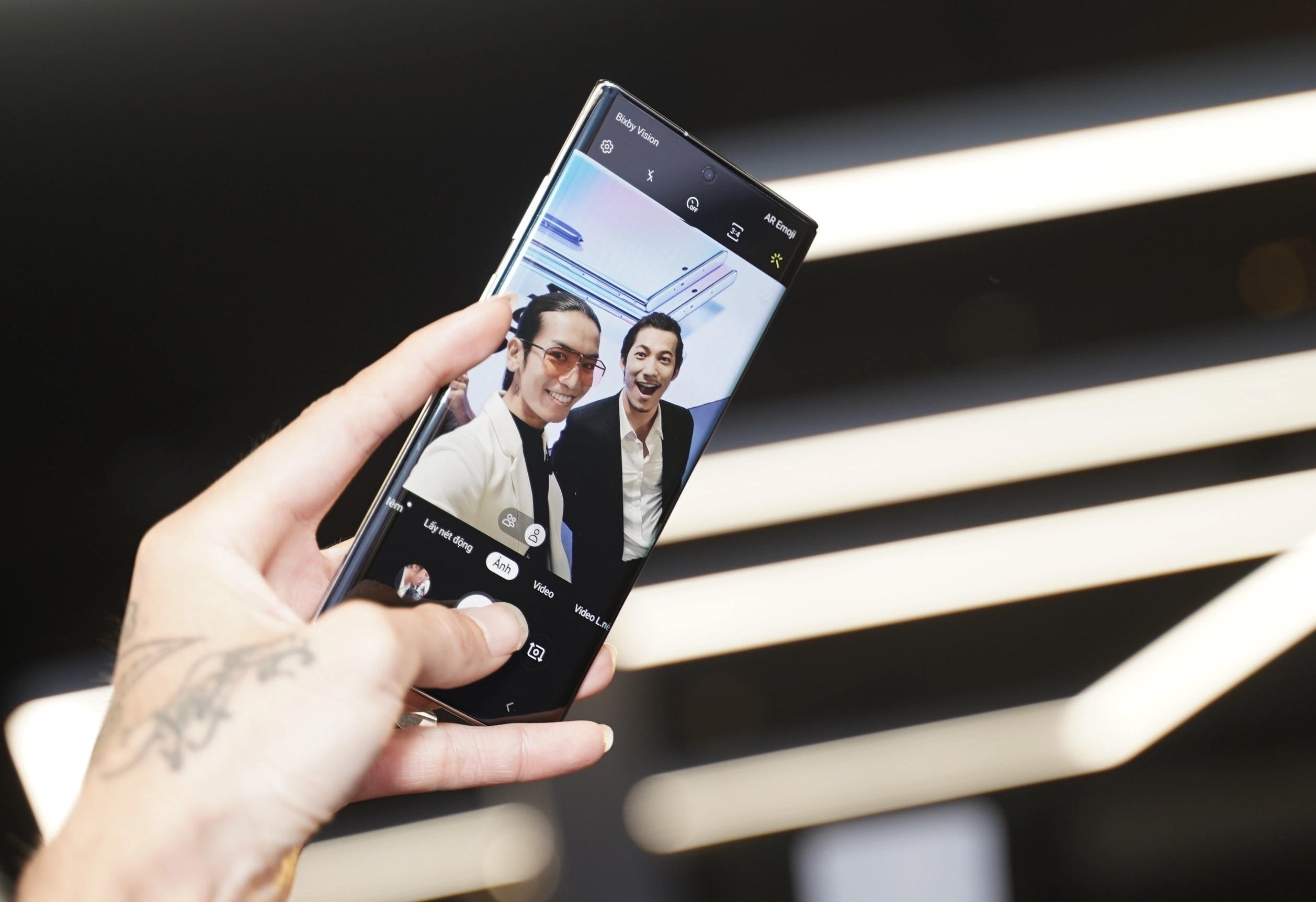 Sự kiện ra mắt sản phẩm công nghệ mới còn quy tụ hàng trăm người tiêu dùng. Đa số đến từ rất sớm, trật tự xếp hàng để mua Galaxy Note10. Nhiều khán giả dùng chính chiếc điện thoại vừa mua để chụp lại khoảnh khắc bên BB Trần và Liên Bỉnh Phát.