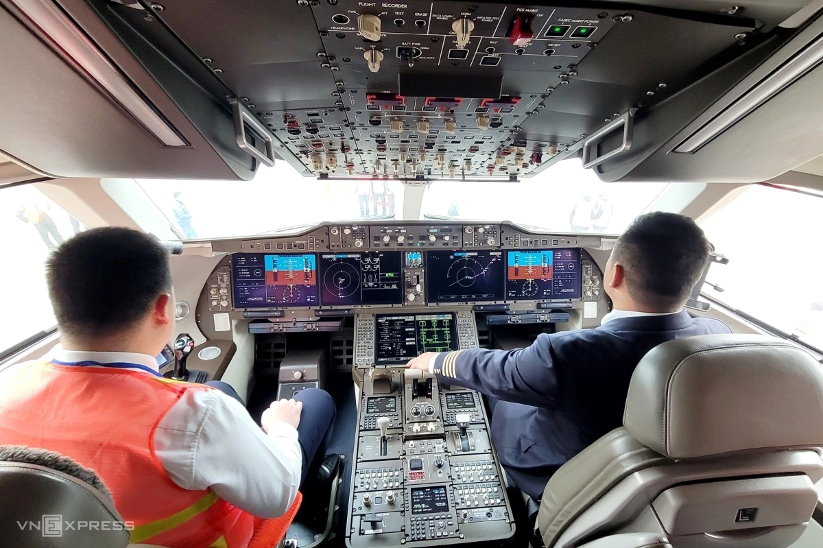 Trong đó, một màn hình cạnh ghế phi công kết nối với hệ thống camera trên trần, cho phép tổ lái quan sát đầy đủ từ cửa ra vào đến cuối khoang hành khách của tàu bay.