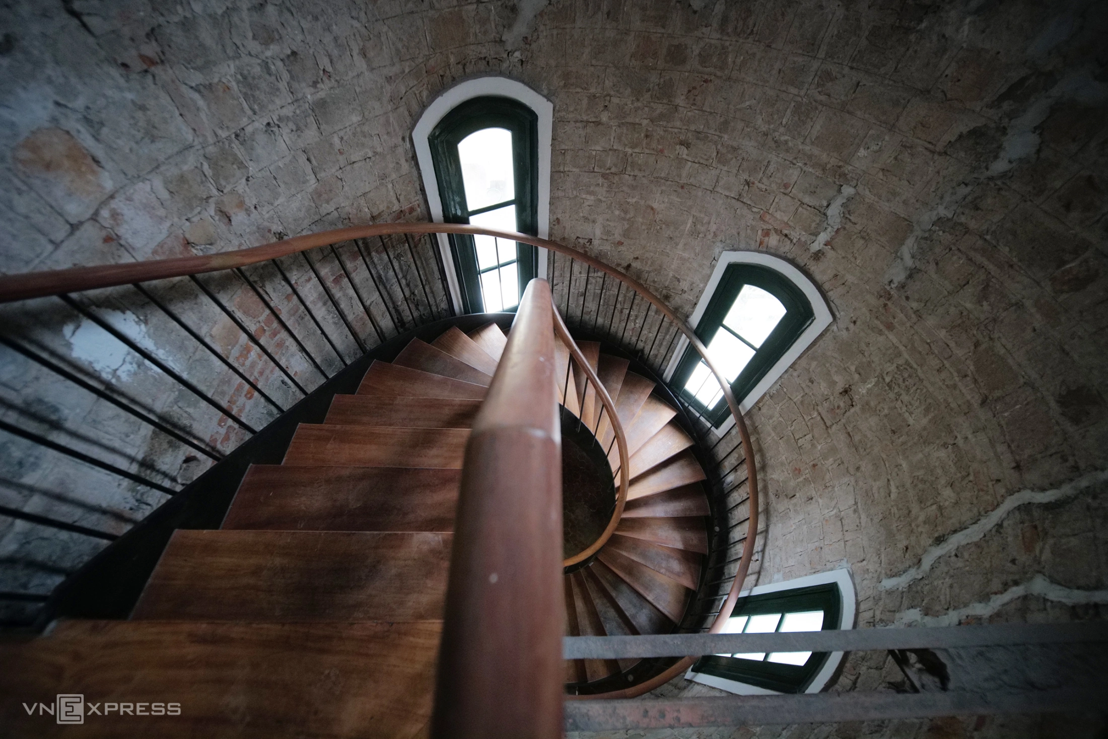 Bên trong tòa nhà được sơn trắng, các cánh cửa sổ màu xanh. Toàn bộ hai tầng đang là không gian trưng bày hình ảnh trước và sau trùng tu.