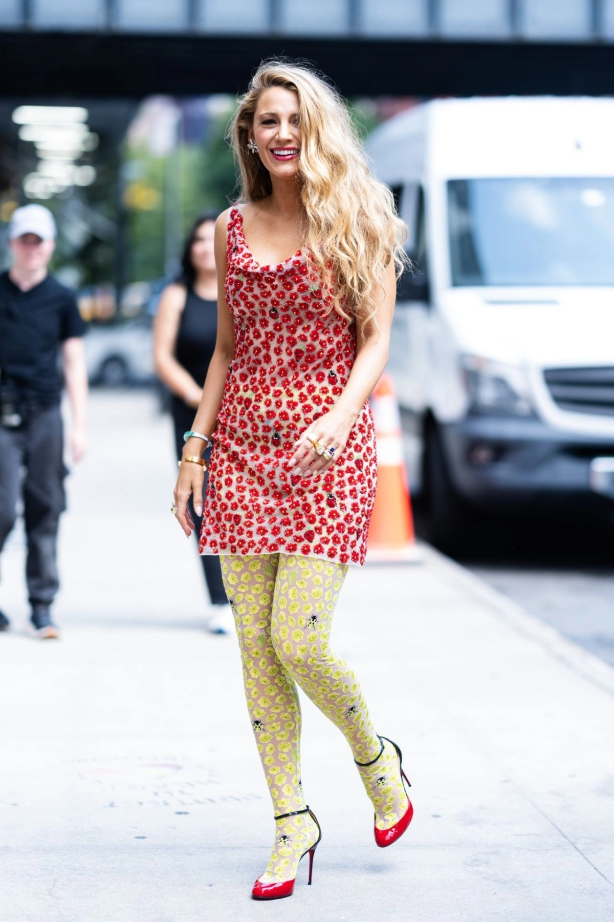 Hơn hai tuần qua, cô liên tục mặc trang phục chủ đề hoa khi tham gia các hoạt động quảng bá It Ends with Us - tác phẩm được chuyển thể từ cuốn sách cùng tên bán hơn bốn triệu bản toàn cầu của Colleen Hoover. Trong phim, Lively vào vai cô chủ cửa hàng hoa Lily có cuộc hôn nhân nhiều thăng trầm với bác sĩ phẫu thuật nội trú. Phim dự kiến công chiếu ngày 9/8.