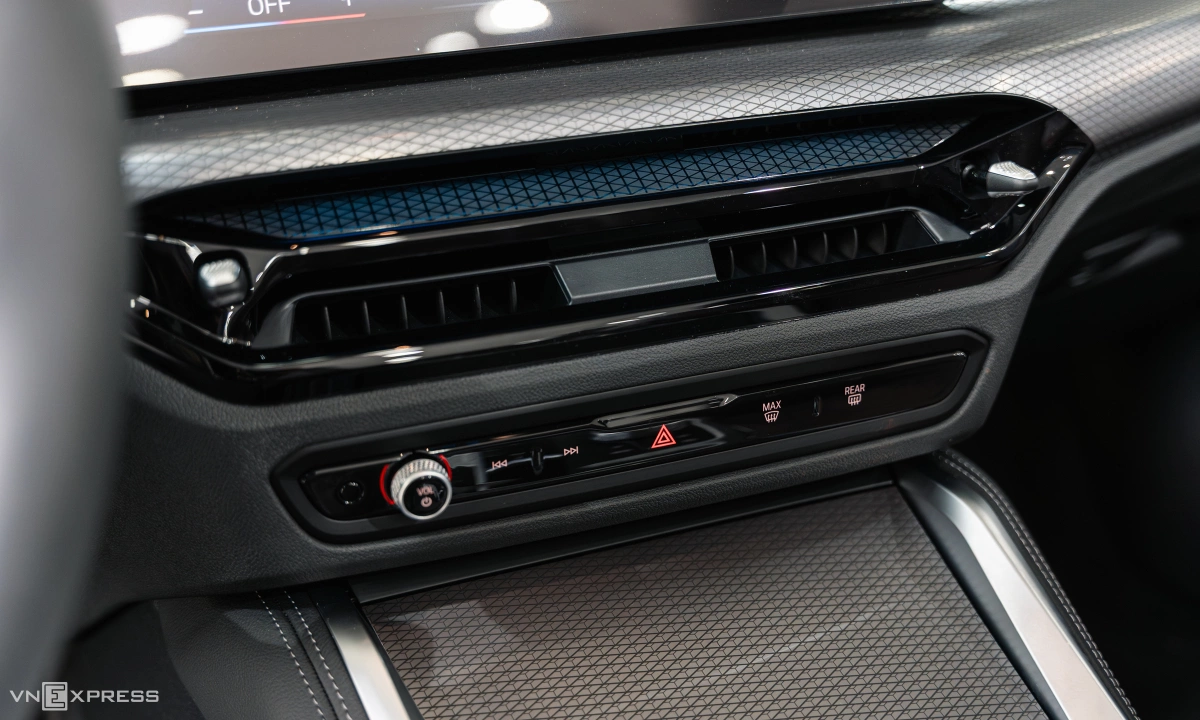 Các cửa gió điều hòa cũng được tinh chỉnh thiết kế, tạo cảm giác liền mạch với phần khung sơn đen bóng thay vì mạ crôm, đồng thời bổ sung đèn viền nội thất. Phía dưới giữ nguyên các nút vật lý tăng giảm âm lượng, đèn cảnh báo, sấy kính trước/sau. Các tiện ích khác gồm điều hòa hai vùng độc lập, sạc không dây.