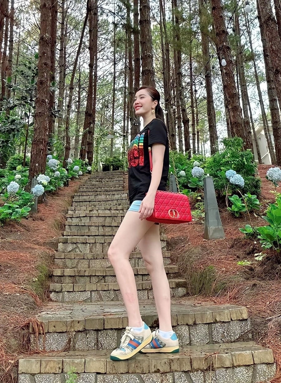 Bảo Thy chọn sneakers của Gucci khi đi du lịch để thuận tiện trong việc di chuyển. Ngoài túi Chanel, cô còn có nhiều túi Dior như túi yên ngựa, túi Cargo hơn 5.100 USD.