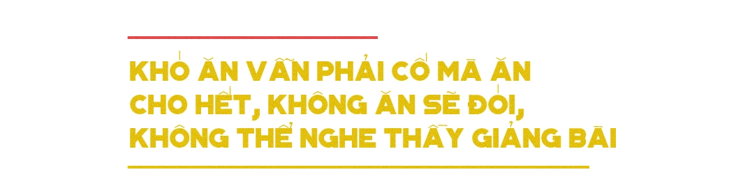 "Khó ăn vẫn phải cố ăn cho hết, không ăn sẽ đói, không thể nghe thầy giảng bài", Vàng Thị Nga nói về những bữa cơm trắng đựng trong túi nylon. Nhiều hơn, cơm của em sẽ chỉ thêm chút muối vừng, hoặc lạc. Hiếm hoi lắm mới có thêm quả trứng.
