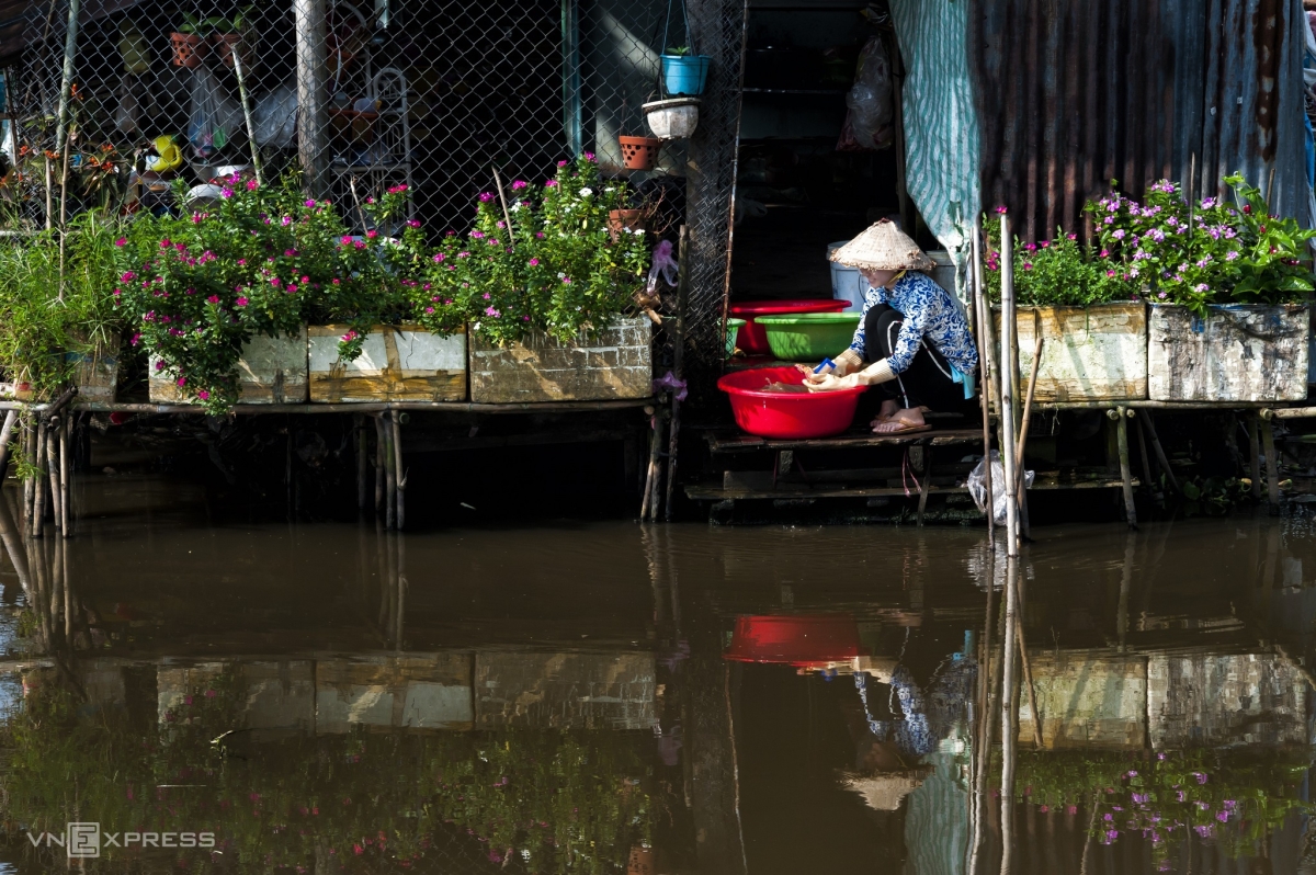 Cảnh sinh hoạt làm cá, rửa rau ngay phía sau những ngôi nhà nằm giáp mé sông rất đặc trưng ở vùng quê miền sông nước. Ảnh được Tuấn Anh chụp tại con sông chảy qua địa phận phường 4, TP Vị Thanh.