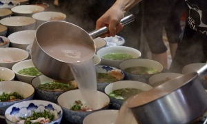 Quán đông khách, đặc biệt từ 8h - 10h sáng. Lúc này 2 cơ sở với gần 100 chỗ ngồi đều chật kín. Vì vậy, thực khách sẽ nhận một thẻ gọi đồ và tự phục vụ hầu hết mọi công đoạn, trừ làm bún.