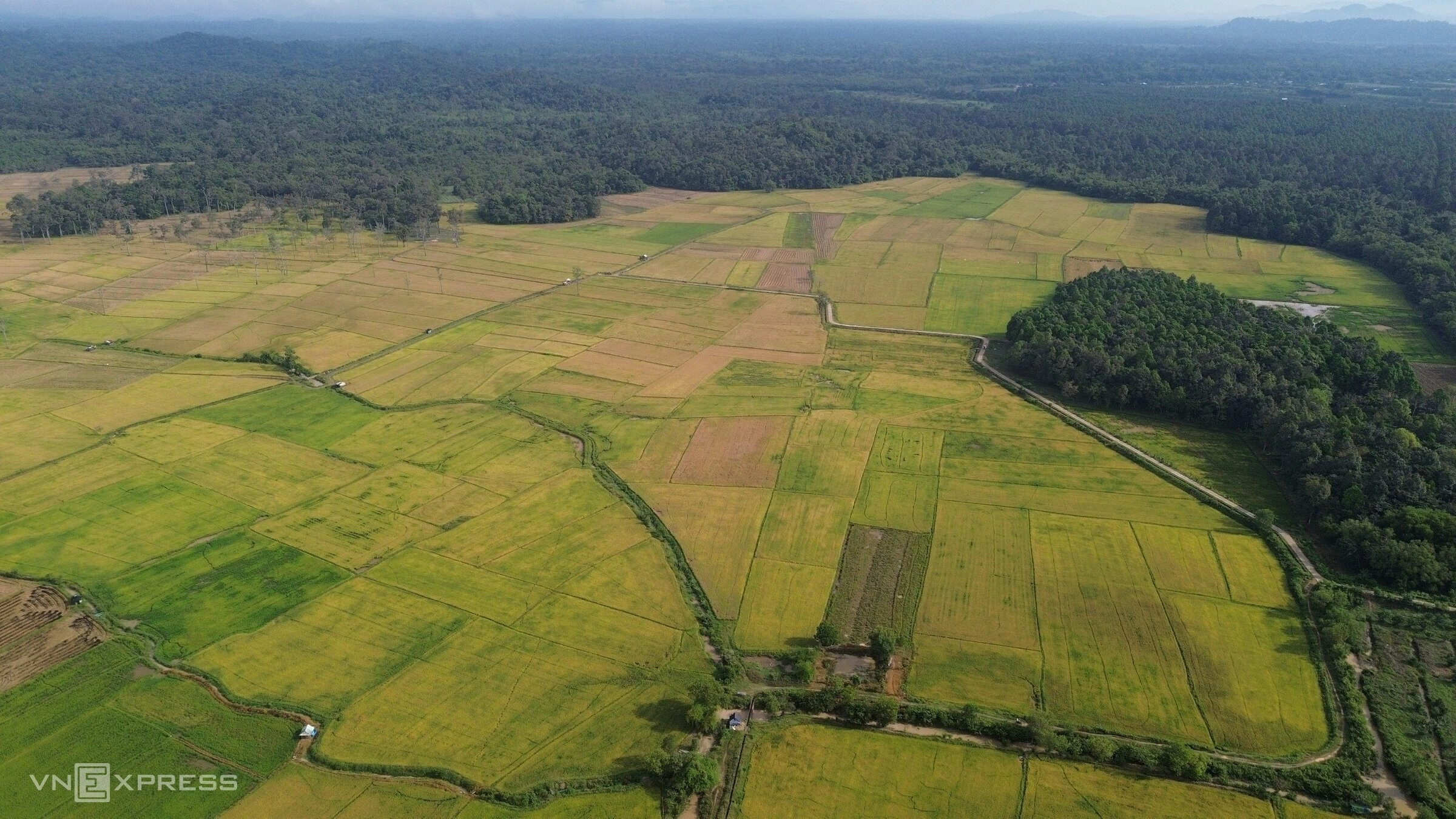 Nhìn từ trên cao, những cây cao su rụng trơ trụi tạo ra khung cảnh được ví như "rừng bạch dương ở Đông Âu".