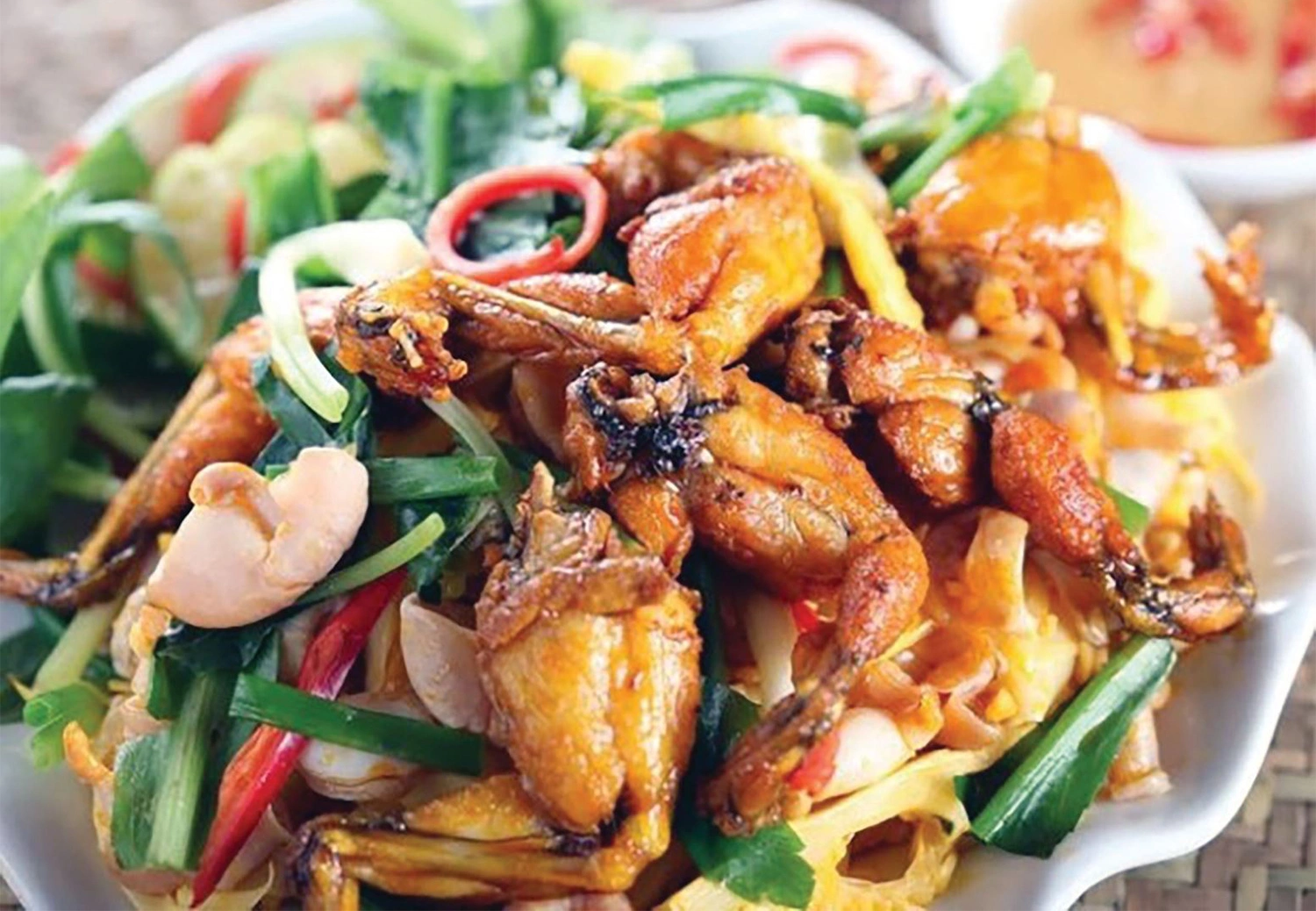 Để lột tả hết vị ngon của món ăn, người chế biến phải có khả năng "cầm vị", phải làm chủ được công thức với 23 loại gia vị. Quá trình chế biến cũng cần kỹ lưỡng ngay từ khâu chọn nguyên liệu, phương pháp, thời điểm tẩm ướp, nêm nếm, giữ lửa điều chỉnh theo từng thời điểm. Hai món tiêu biểu nhất là ếch om chuối đậu và ếch om tiến vua. Ếch ngon nhất khoảng tháng 9-10 hàng năm.
