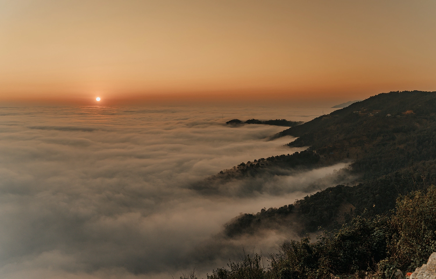 Hoàng hôn Tà Xùa nhìn từ một khu homestay. Ảnh: Nguyễn Thành Luân