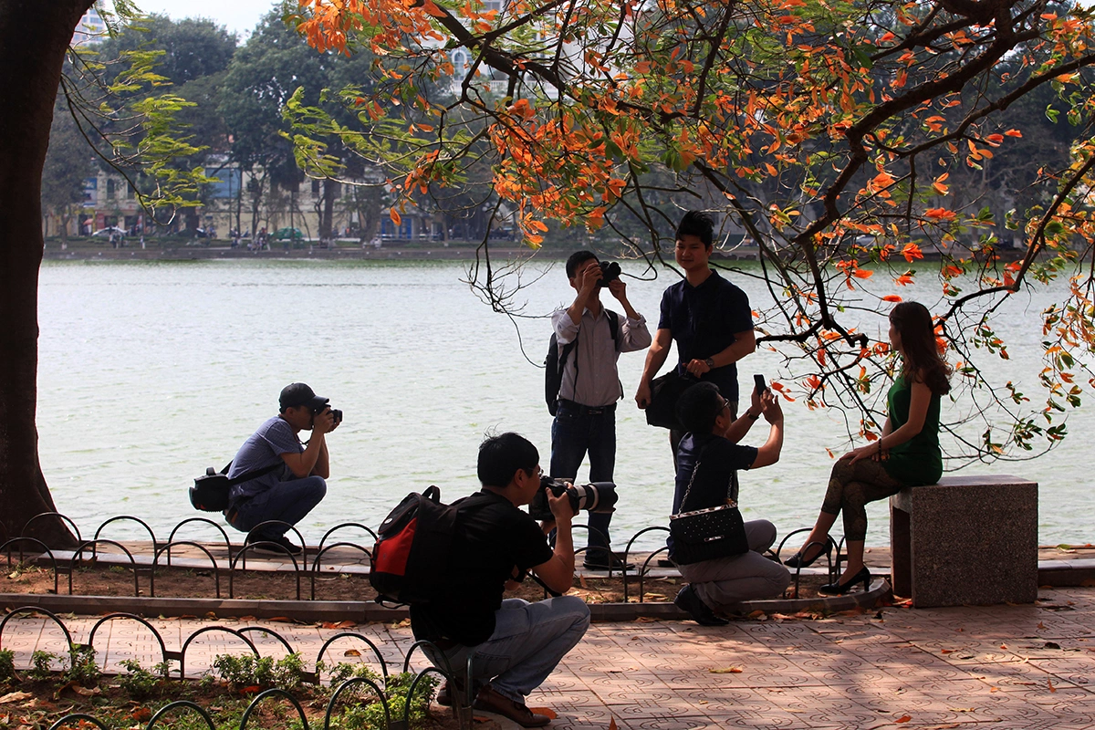 Cứ mỗi mùa thay lá hay trổ hoa, cây lộc vừng cổ thụ bên bờ Hồ Gươm lại thu hút khách du lịch, và các tay máy đến thỏa sức bấm máy.