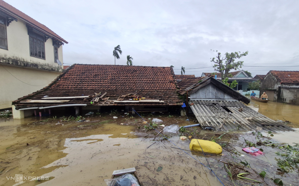 Chiều 29/10, ngôi nhà cấp 4 của anh Trương Tấn Bình, 38 tuổi, ở thôn Tuy Lộc, xã Lộc Thủy, huyện Lệ Thủy vẫn ngập sâu gần hai mét. Anh phải treo quan tài người mẹ 74 tuổi lên gác xép. Sáng qua, bà qua đời vì bạo bệnh.