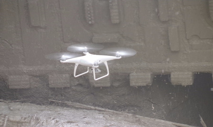Ở một mối nối của cửa chắn, bọt chảy thành dòng do các kỹ sư sử dụng dầu xả nhiều bọt để làm đất dễ đào qua hơn.