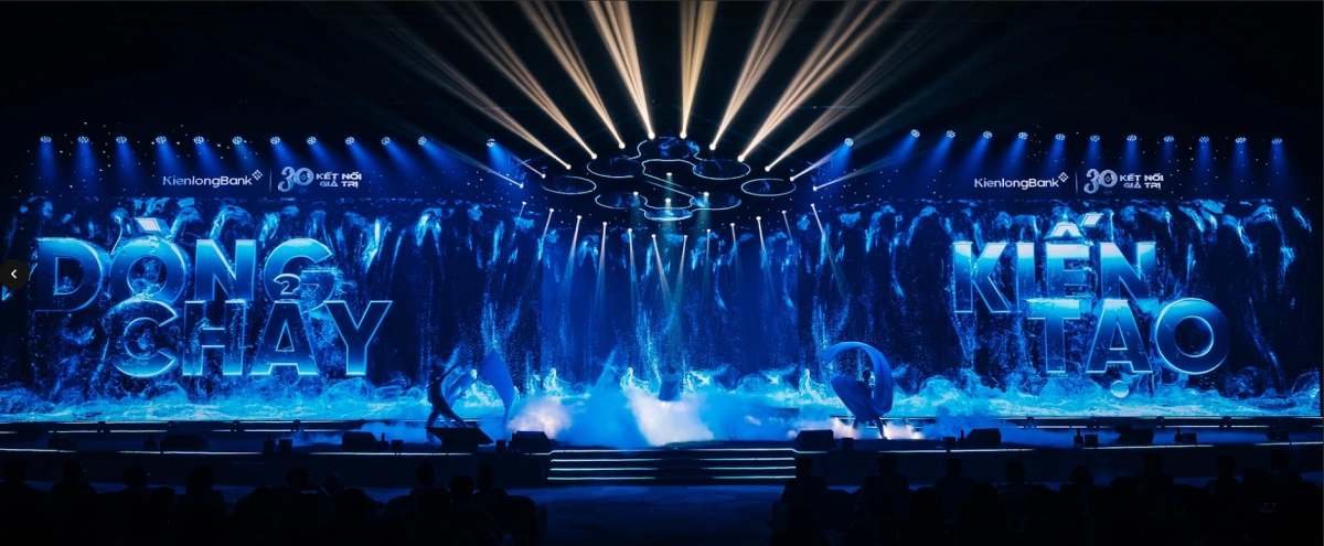 Đặc biệt, chương "Gió" tạo ra một không gian bùng nổ của công nghệ và âm nhạc, biểu trưng cho tốc độ chuyển đổi cũng như những đột phá của KienlongBank trong kỷ nguyên số. Loạt thành tựu công nghệ "Made in Vietnam" như ngân hàng số X-Digi, giao dịch viên AI Teller, bộ đôi giải pháp MyShop - PayBox được tái hiện ấn tượng trên sân khấu, khẳng định vị thế một trong những ngân hàng tiên phong trong chuyển đổi số.