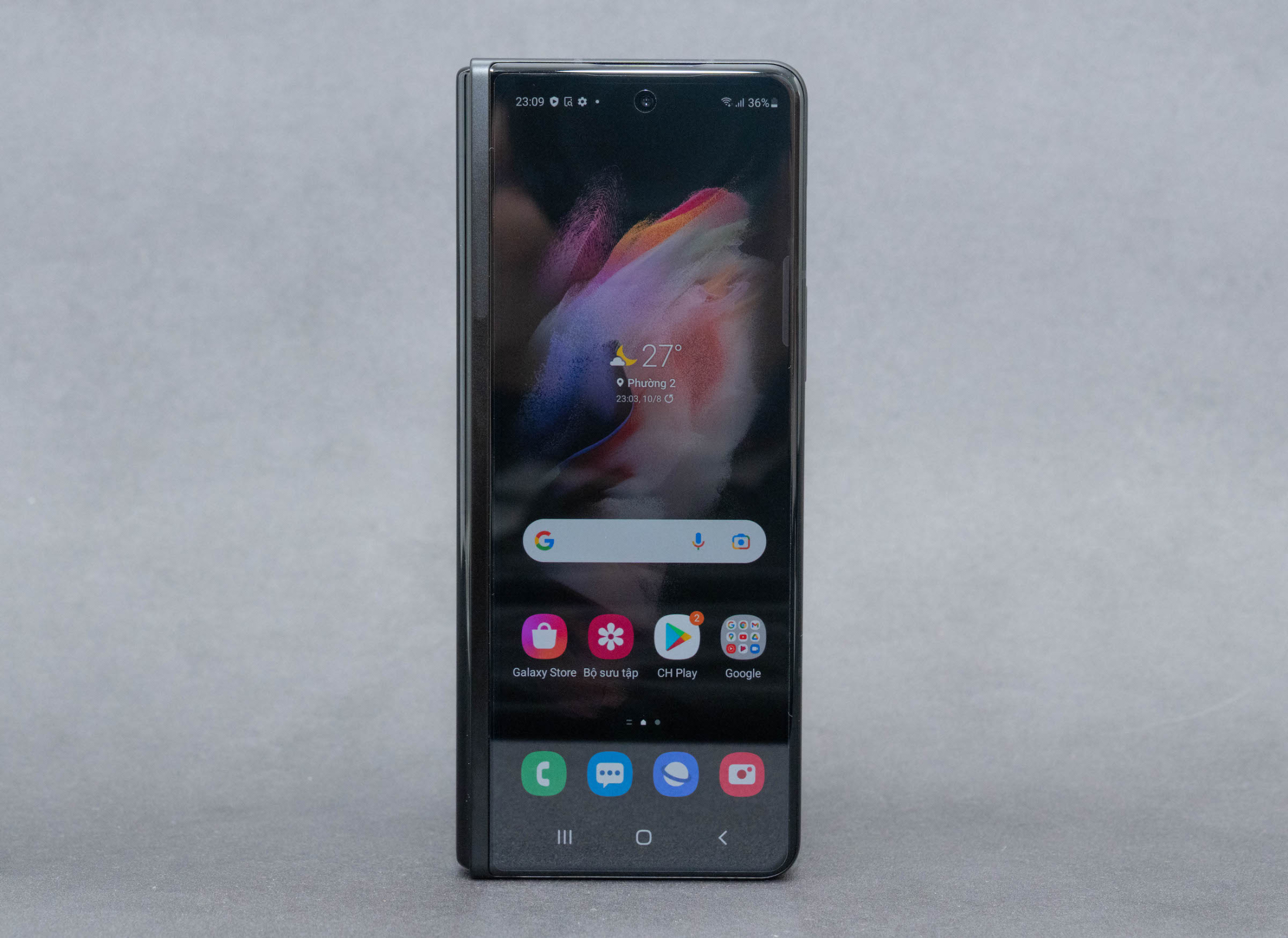 Màn hình trong và ngoài của Galaxy Z Fold3 không thay đổi về kích thước so với thế hệ trước. Bên ngoài là màn hình 6,2 inch tỷ lệ siêu dài 25:9, tần số làm tươi được nâng lên 120 Hz, gấp đôi so với thế hệ trước. Màn hình bên trong sử dụng tấm nền Dynamic AMOLED 2X kích thước 7,6 inch 120 Hz. Điểm nổi bật của màn hình bên trong là camera ẩn dưới màn hình và hỗ trợ bút S Pen.