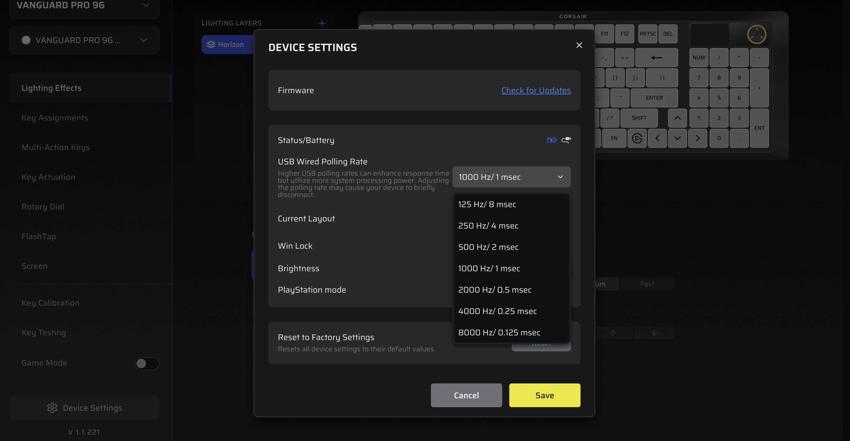 Corsair cho phép người dùng tháo lắp nhanh switch thay vì phải hàn PCB như phím cơ thông thường. Socket của Vanguard Pro 96 hỗ trợ cả switch cơ 3 pin và 5 pin phổ biến, tức nếu không switch từ tính, người dùng có thể đổi sang Cherry, Gateron hoặc Akko dễ dàng.
