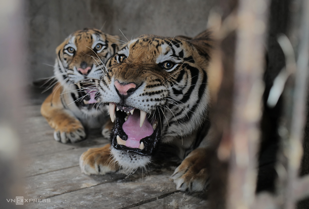 Ba hổ đực, ba hổ cái được nhốt trong 5 chuồng cao 3 m, diện tích hơn 300 m2. Hổ được xét nghiệm DNA để theo dõi nhưng không gắn chip.