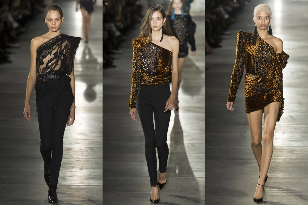 Lệch vai, da báo - hai xu hướng được lăng xê mạnh trong mùa lạnh cuối năm - tiếp tục là niềm say mê của các cô gái nhà Saint Laurent ở nửa đầu năm sau.