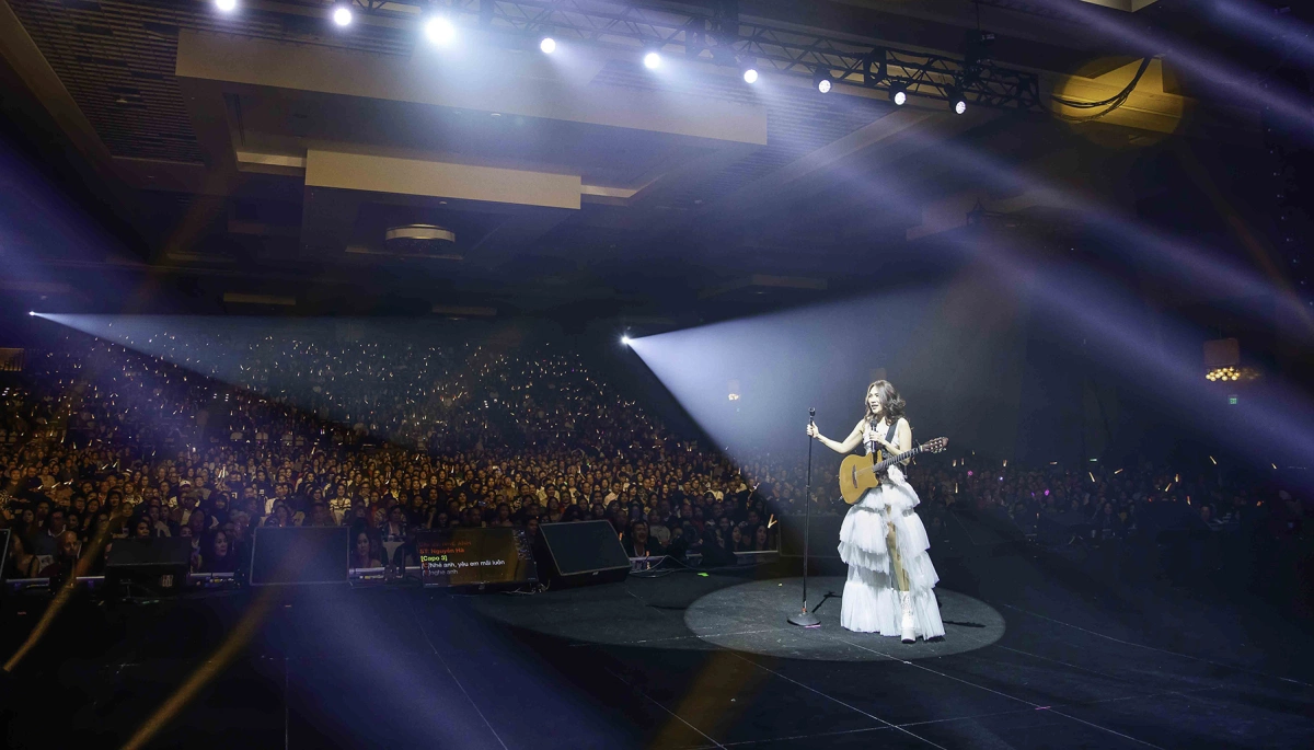Ca sĩ mang êkíp trong nước sang Mỹ gồm ban nhạc Hoài Sa và vũ đoàn MTE, với mong muốn tạo nên chương trình thu hút về phần nghe lẫn nhìn. Cô vừa hát, nhảy múa vừa tự dẫn dắt chương trình trong suốt bốn giờ.