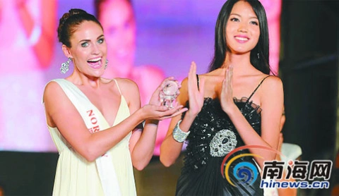 Miss World 2007 Trương Tử Lâm trao danh hiệu Miss Top Model cho người đẹp Nauy. Trước khi giành vương miện Hoa hậu Thế giới, Tử Lâm cũng đoạt giải phụ này. |
