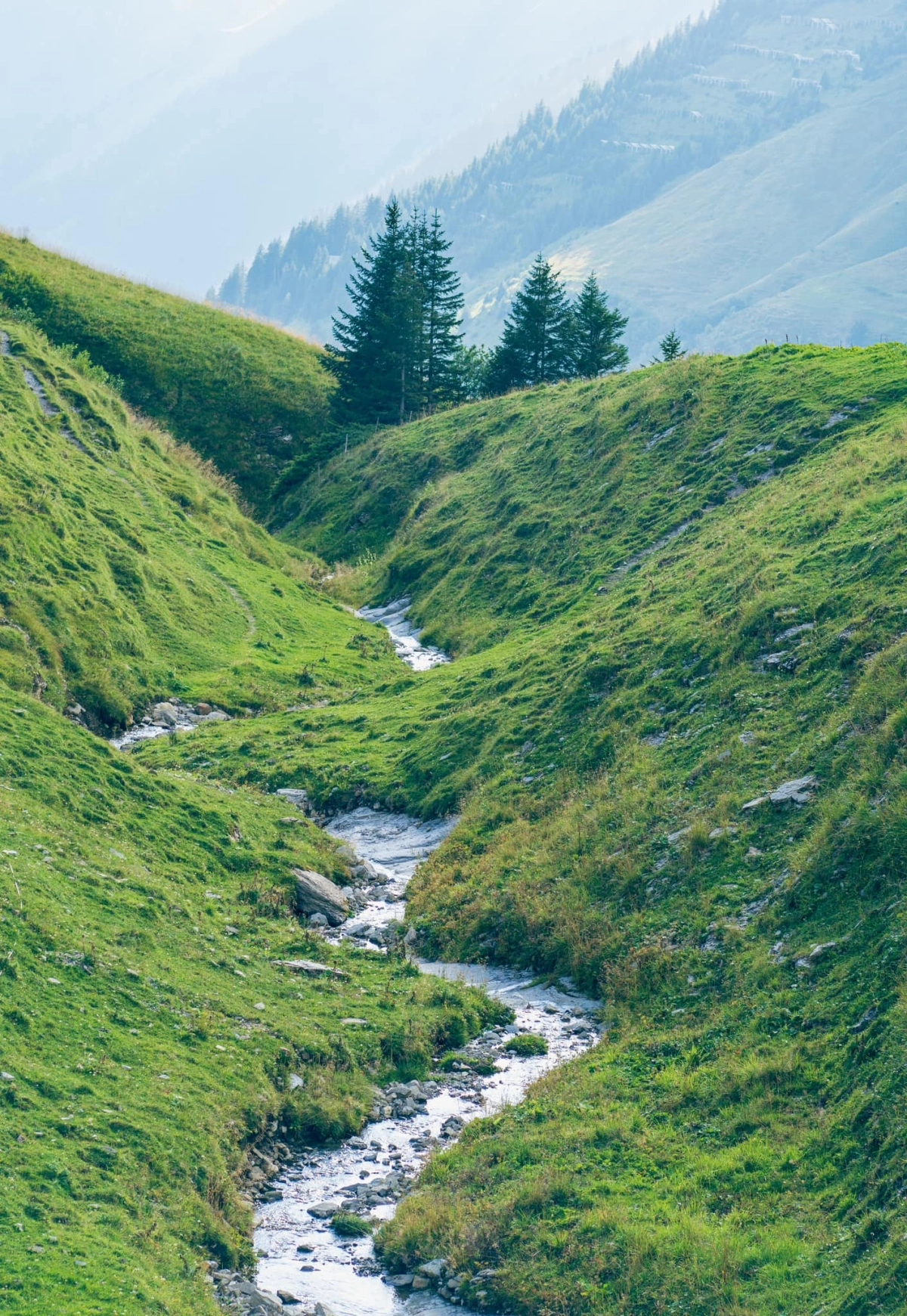 Một con suối nhỏ trên đường lên đỉnh núi. Nữ du khách cho biết xuyên suốt chuyến đi, cảnh sắc liên tục thay đổi. "Khung cảnh trong suốt chặng đường như một cuốn nhật ký giàu cảm xúc", Hồng nói.