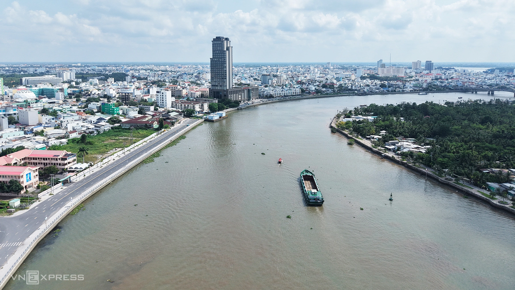 Trong đó, bờ kè kết hợp công viên, quảng trường xây dựng từ đường Trần Phú chạy cặp sông Hậu dài khoảng 1,6 km (cao trình hơn 2,6 m) đến cầu đi bộ (khu vực tiếp giáp giữa sông Hậu - sông Cần Thơ - rạch Khai Luông), với tổng diện tích hơn 40.000 m2, thuộc phường Cái Khế, quận Ninh Kiều. Công trình có tổng mức đầu tư hơn 60 tỷ đồng.