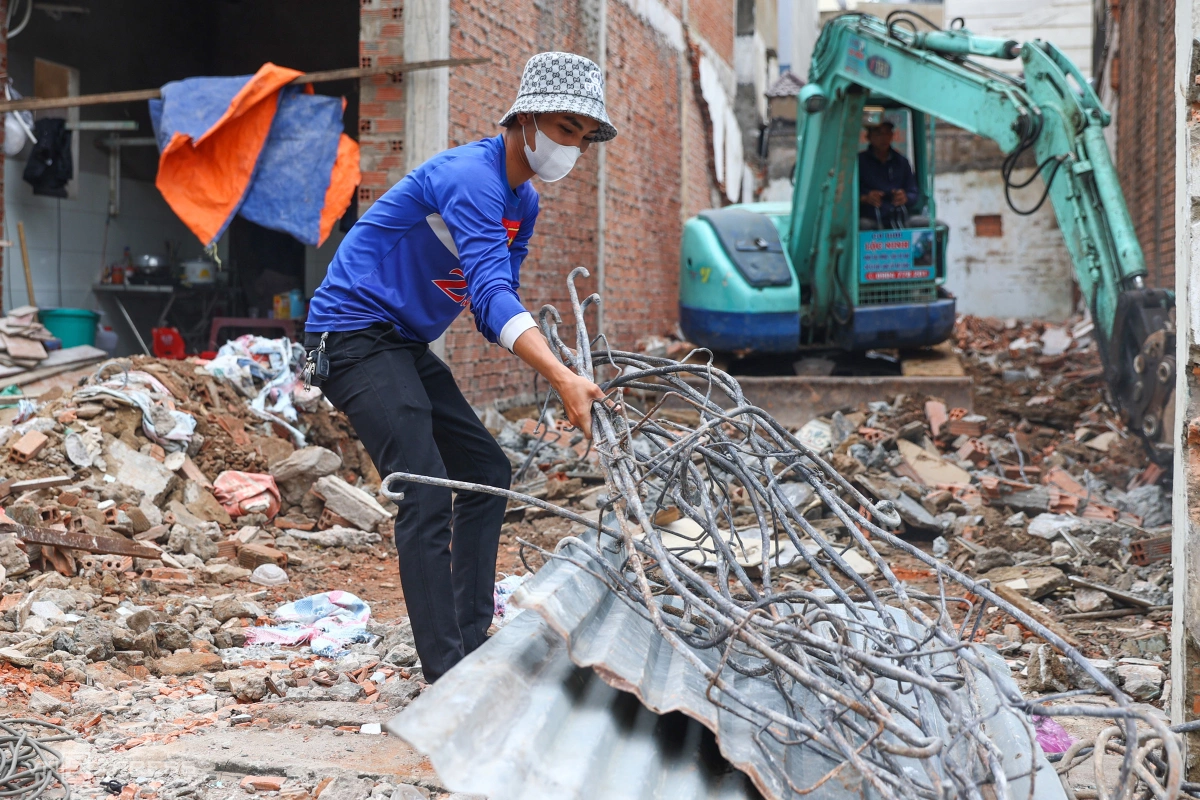 Nhiều hộ dân trên đường Nguyễn Khoái (quận 4 cũ) đang tháo dỡ, bàn giao mặt bằng cho dự án cầu - đường Nguyễn Khoái, dự kiến khởi công tháng 11 và hoàn thành cuối 2027.