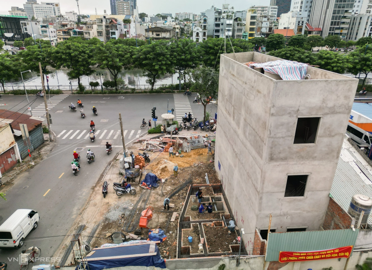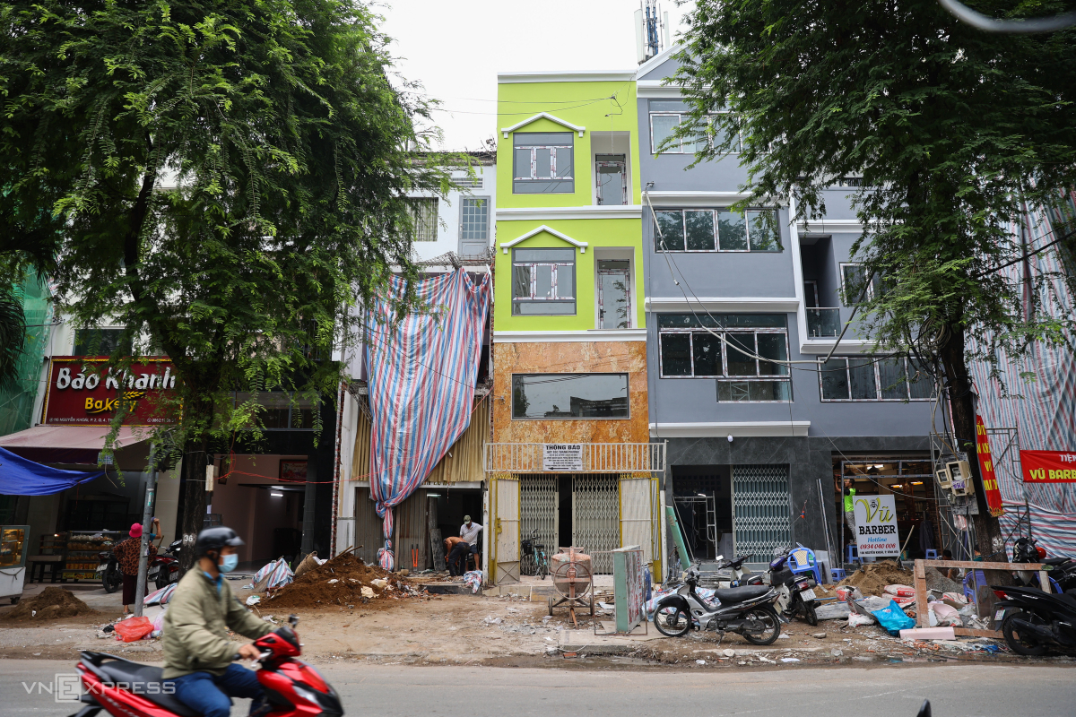 Sau khi bàn giao xong mặt bằng, nhiều nhà đang xây mới hoặc sửa lại. Trung bình mỗi hộ dân lùi khoảng 3-7 m tùy theo diện tích và quy hoạch dự án.