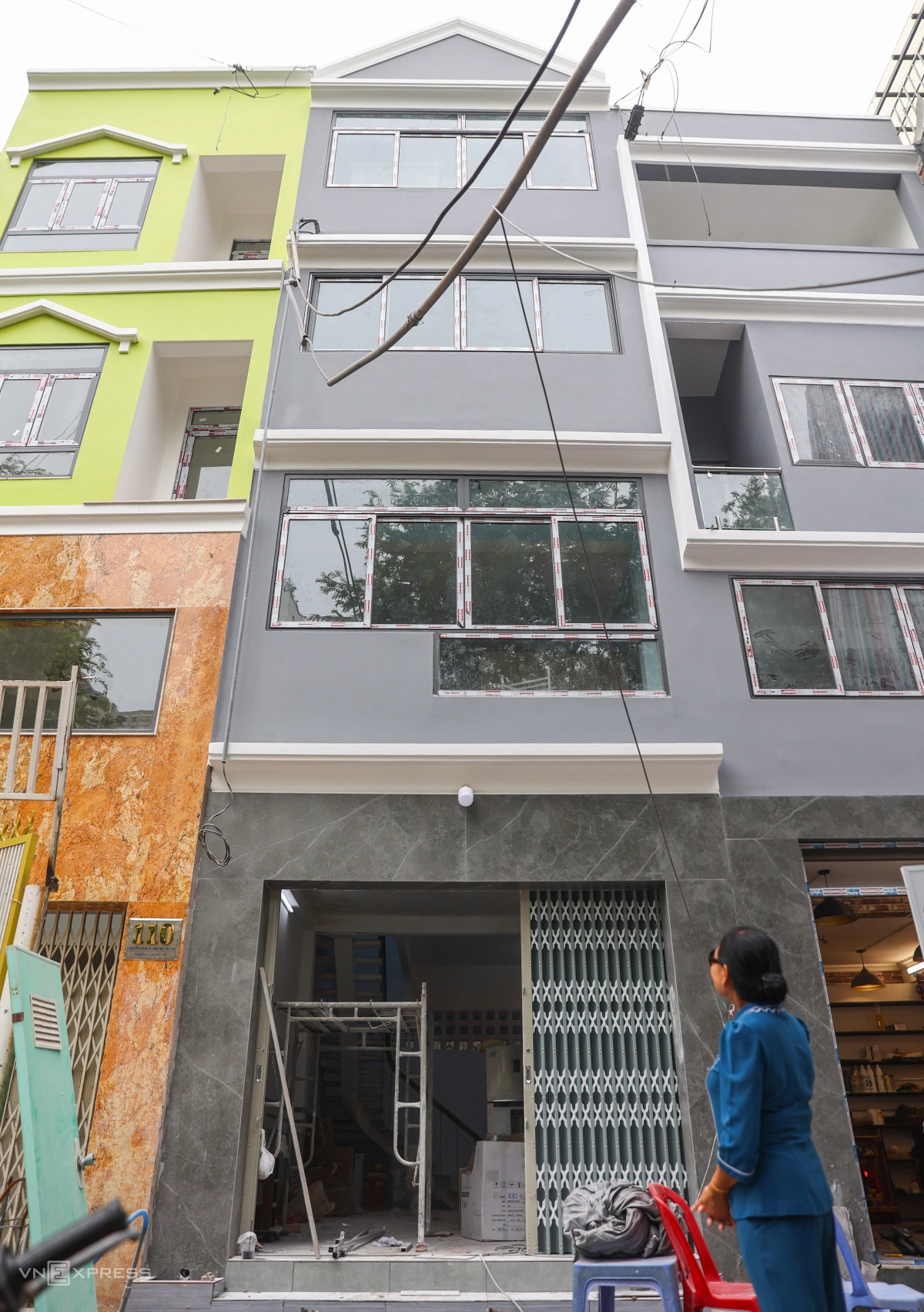 Một dãy khoảng 15 nhà trên đường Nguyễn Khoái đã sửa xong, chờ hoàn thiện nội thất bên trong để dọn vào.