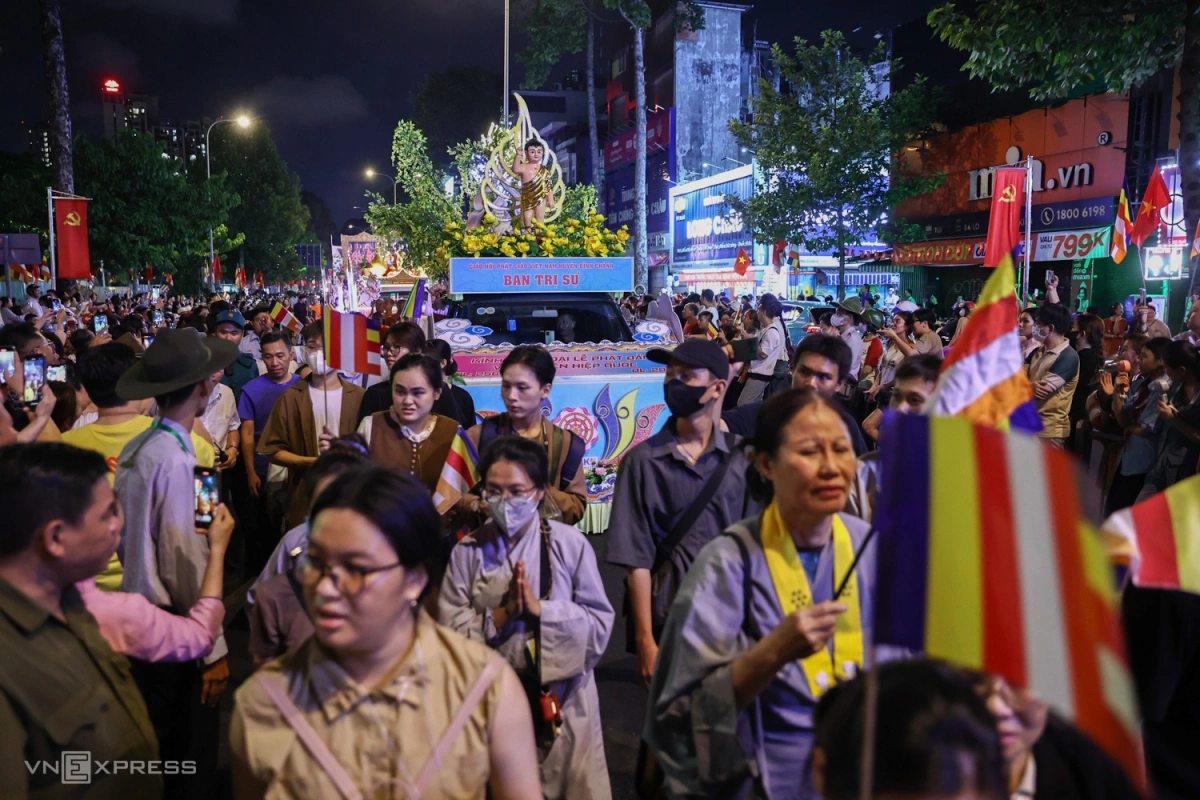 Mỗi khi xe hoa chở tượng Phật đi qua, bà Nguyễn Thị Nhàn (quận Tân Phú) thành tâm chắp tay khấn vái. "Đức Phật đản sinh là ngày lễ rất quan trọng với người theo Phật giáo. Cá nhân tôi năm nào cũng ra trước chùa Việt Nam Quốc Tự cùng đón rước ngài", người phụ nữ 65 tuổi nói.