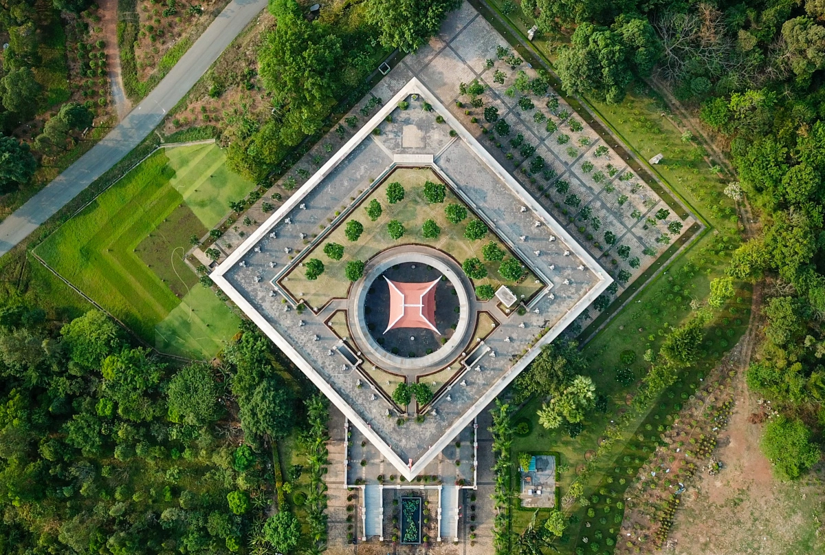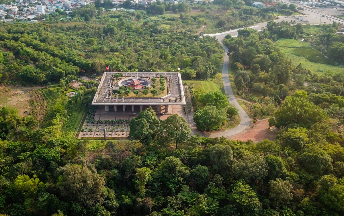 Công trình được hoàn thành năm 2009. Hạng mục đền tưởng niệm gồm 4 phần chính: quảng trường, đường tre, đền thờ và sân vọng.