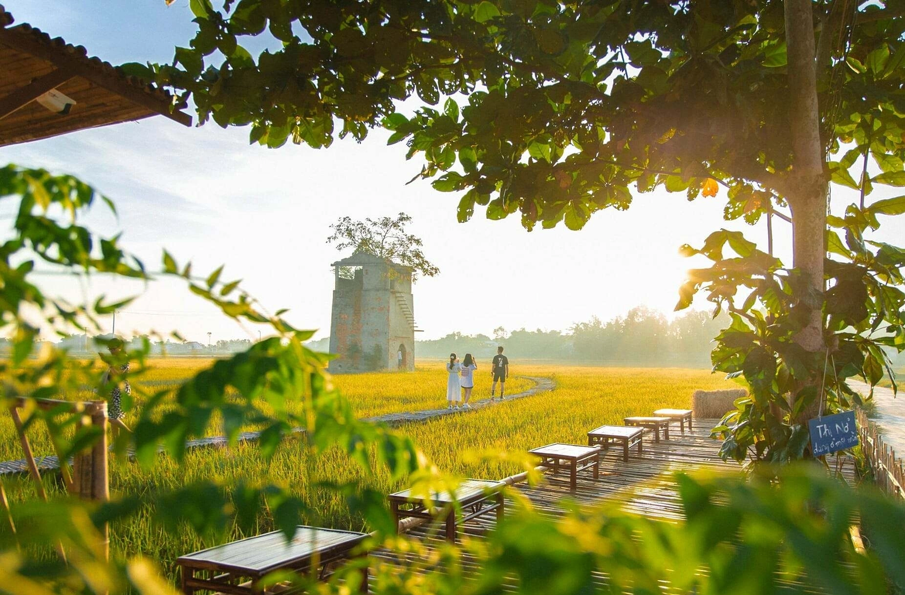 Rời trung tâm phố Hội 4-7 km, du khách có thể khám phá các quán cà phê giữa đồng lúa như Roving Chillhouse, Cà phê Xóm Chiêu, Cà phê Lò Gạch Cũ... để tận hưởng không khí trong lành.