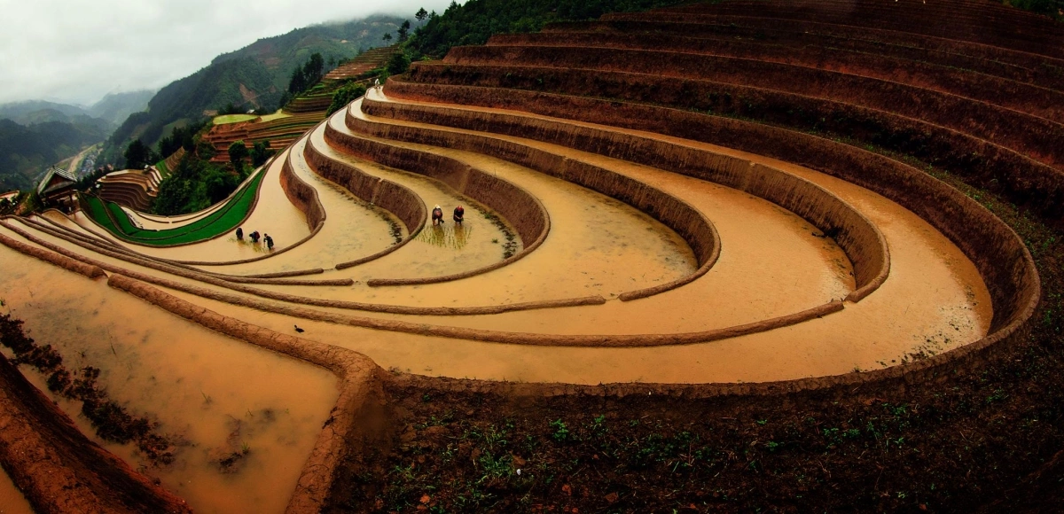 Vòng cung móng ngựa Sán Nhù (xã Mồ Dề, Mù Cang Chải) là góc ảnh quen thuộc của các tay máy khi tới đây sáng tác.