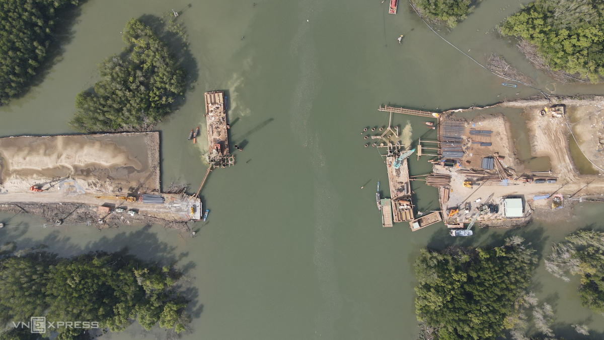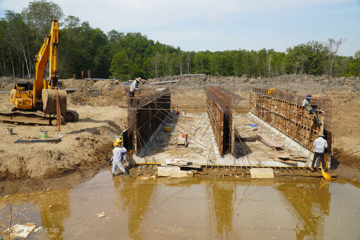 Tuy nhiên, việc nền đất rừng ngập mặn yếu khiến công tác thi công cũng gặp nhiều khó khăn và tốn thời gian. Các công nhân làm việc trong điều kiện bùn lầy, phải dùng cát để xử lý nền.