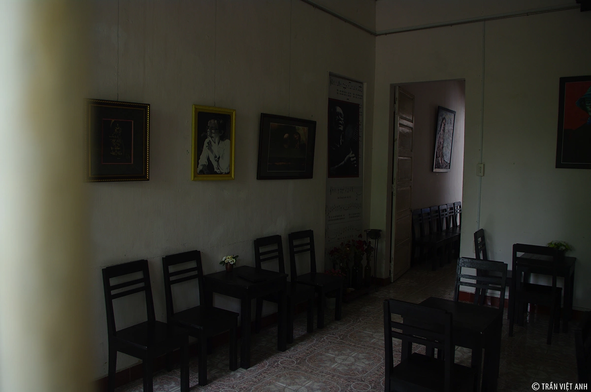 Gian nhà giữa quán là nơi treo nhiều tranh ảnh kỷ niệm của ông. Căn gác nhỏ không chỉ là kỷ niệm, đó còn là nỗi nhớ, niềm thương về một cố nhạc sĩ tài hoa một thời.
